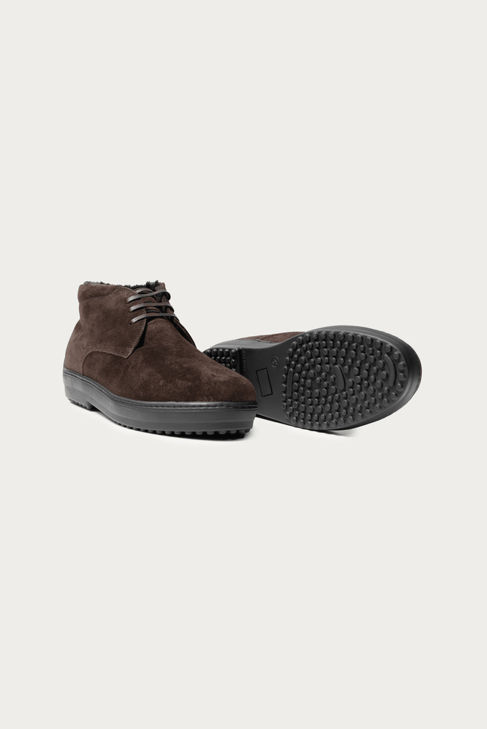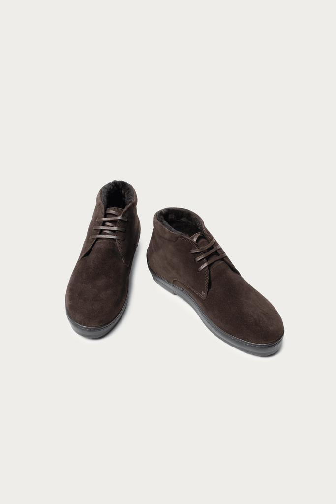 Tom Dunkelbraun Veloursleder mit Lammfell