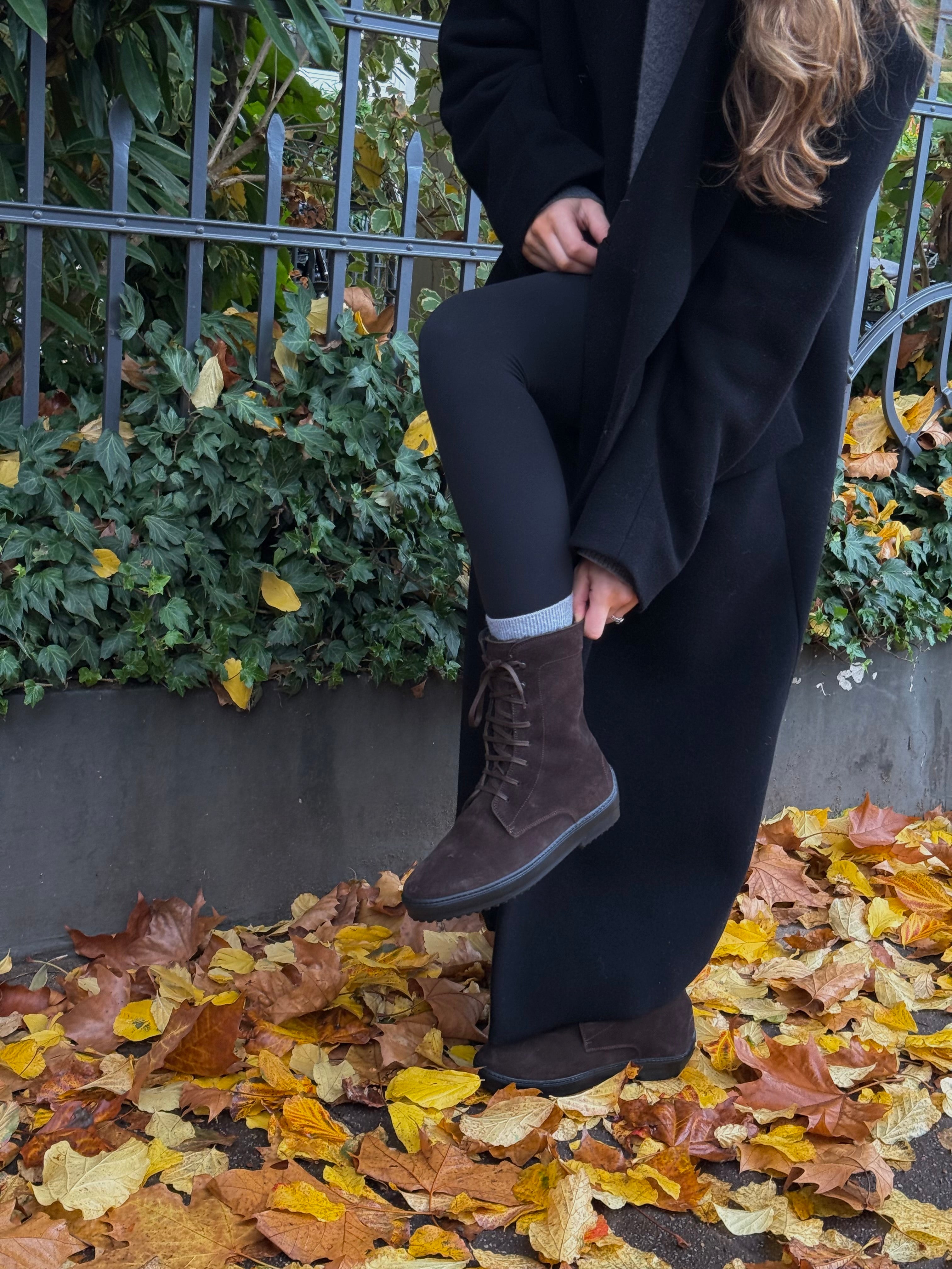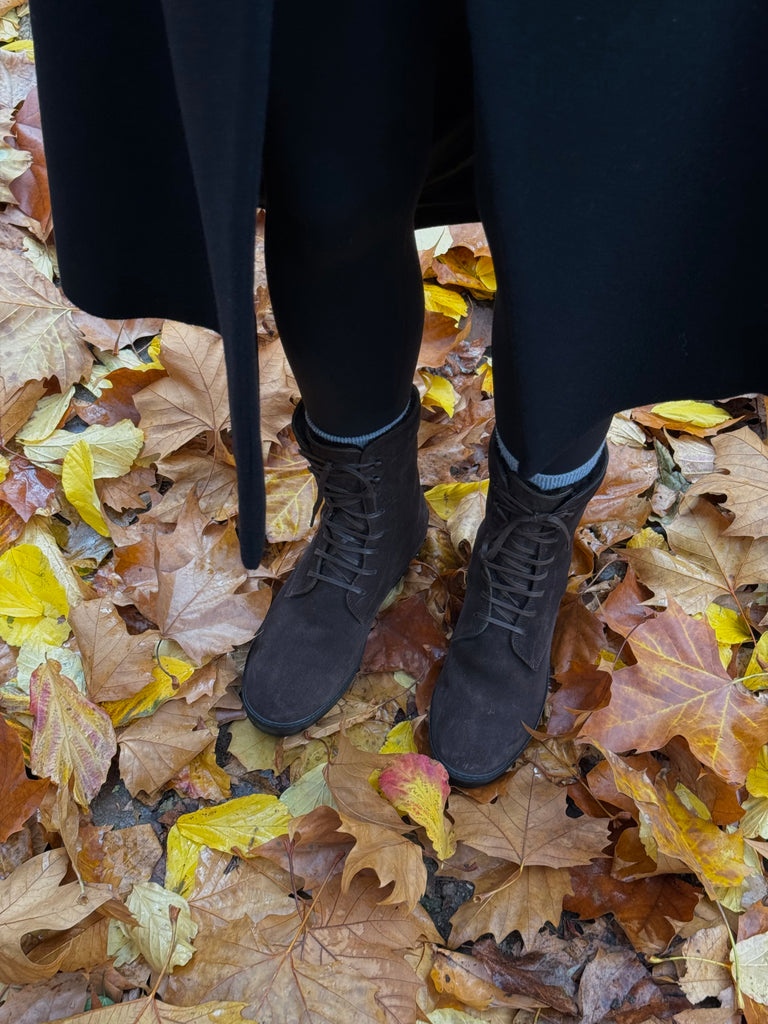 Tonia Dunkelbraun Veloursleder mit Lammfell