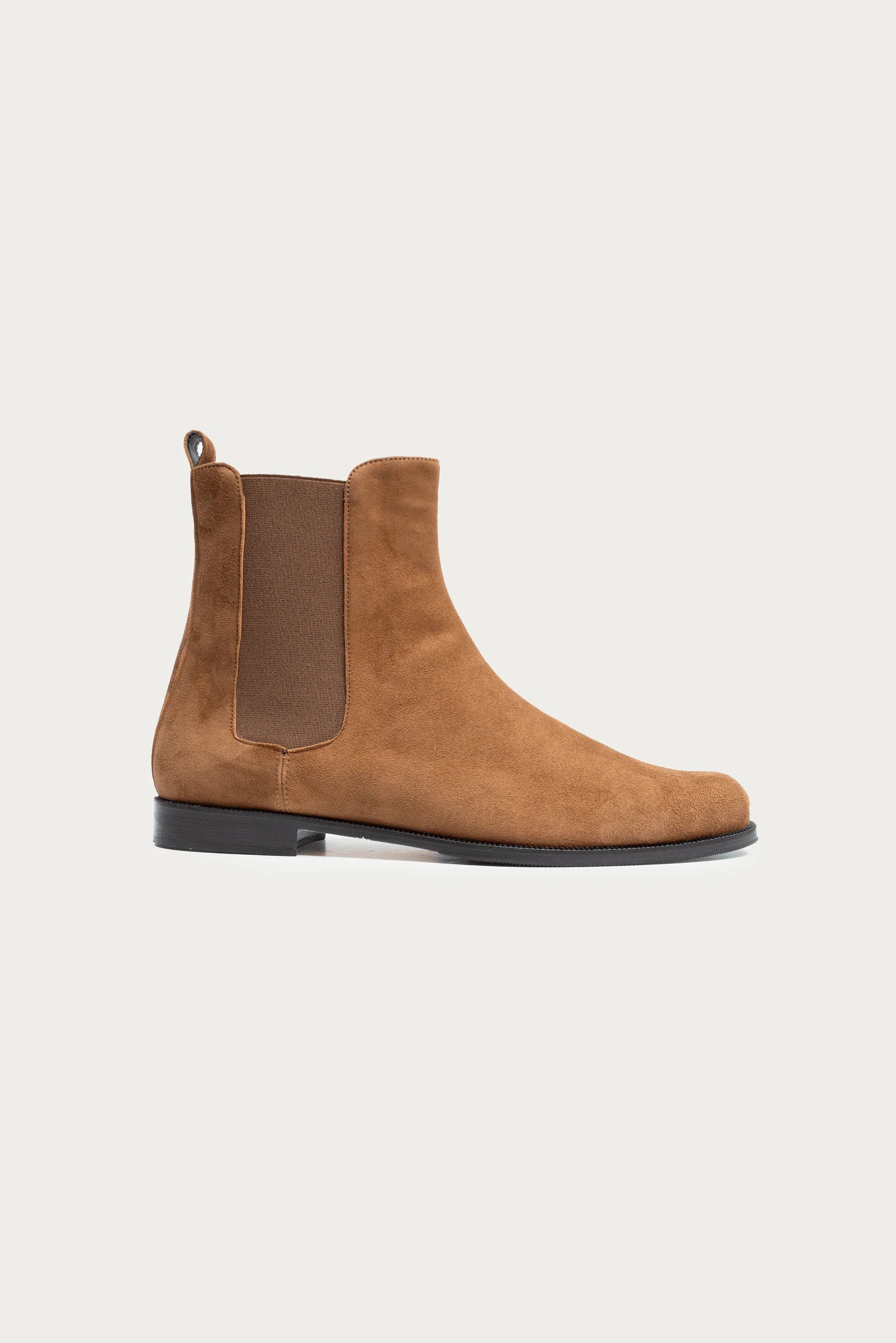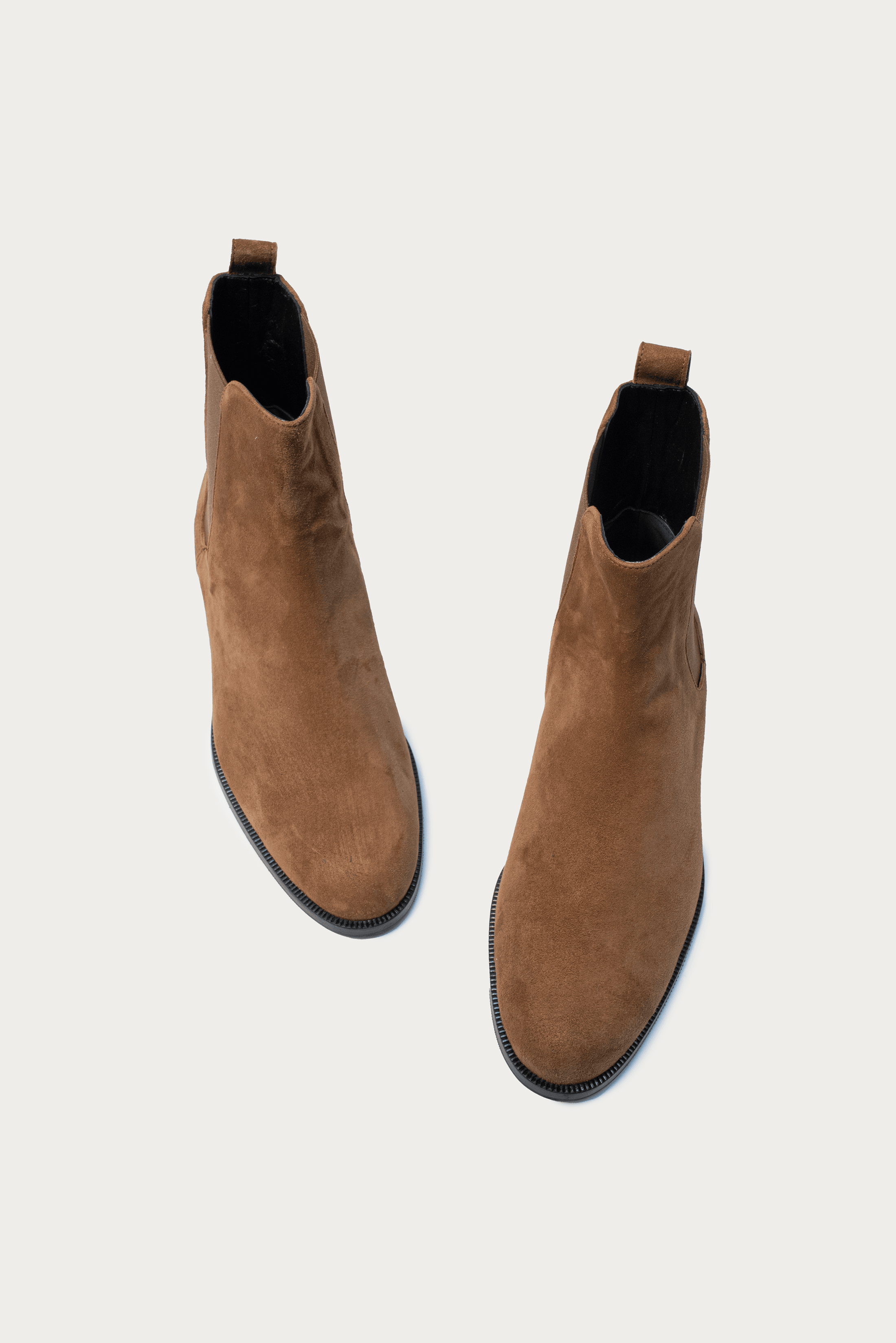 Jetzt in Cognac Wildleder, unsere Chelsea Boots mit flachem Absatz und Stretch-Einsatz. Lässt sich vielseitig kombinieren und unterstreicht den sportlich-eleganten Look.