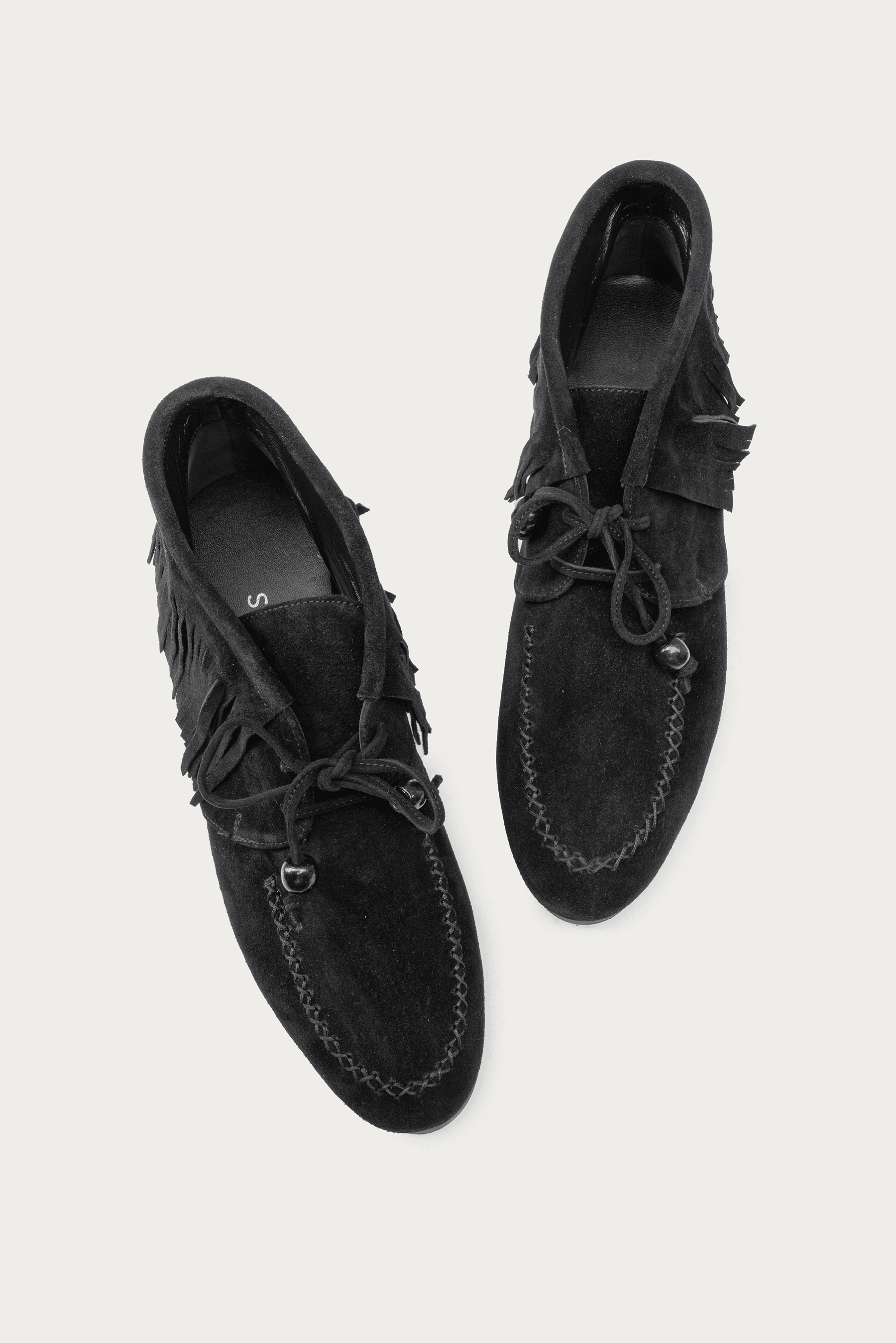 Diese lässigen Boots mit lässigen Fransen um den Schuh herum wurden aus weichem Wildleder in Italien handgefertigt. Besonders bequem ist die runde Zehenkappe. We love Boho-Style!