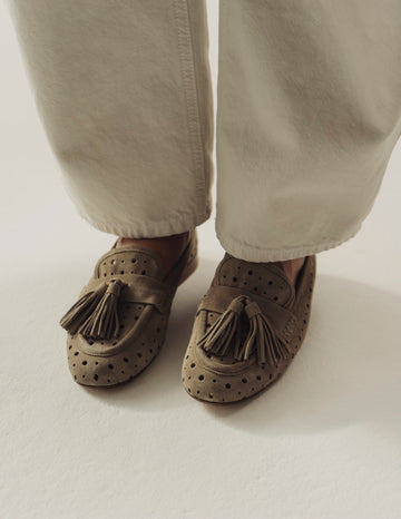 Diese Loafers wurden in Italien aus weichem Wildleder handgefertigt. Besonders wird das Modell durch die Lochoptik und die Tasseln Verziehrung. Das Modell eignet sich perfekt für den Alltag.