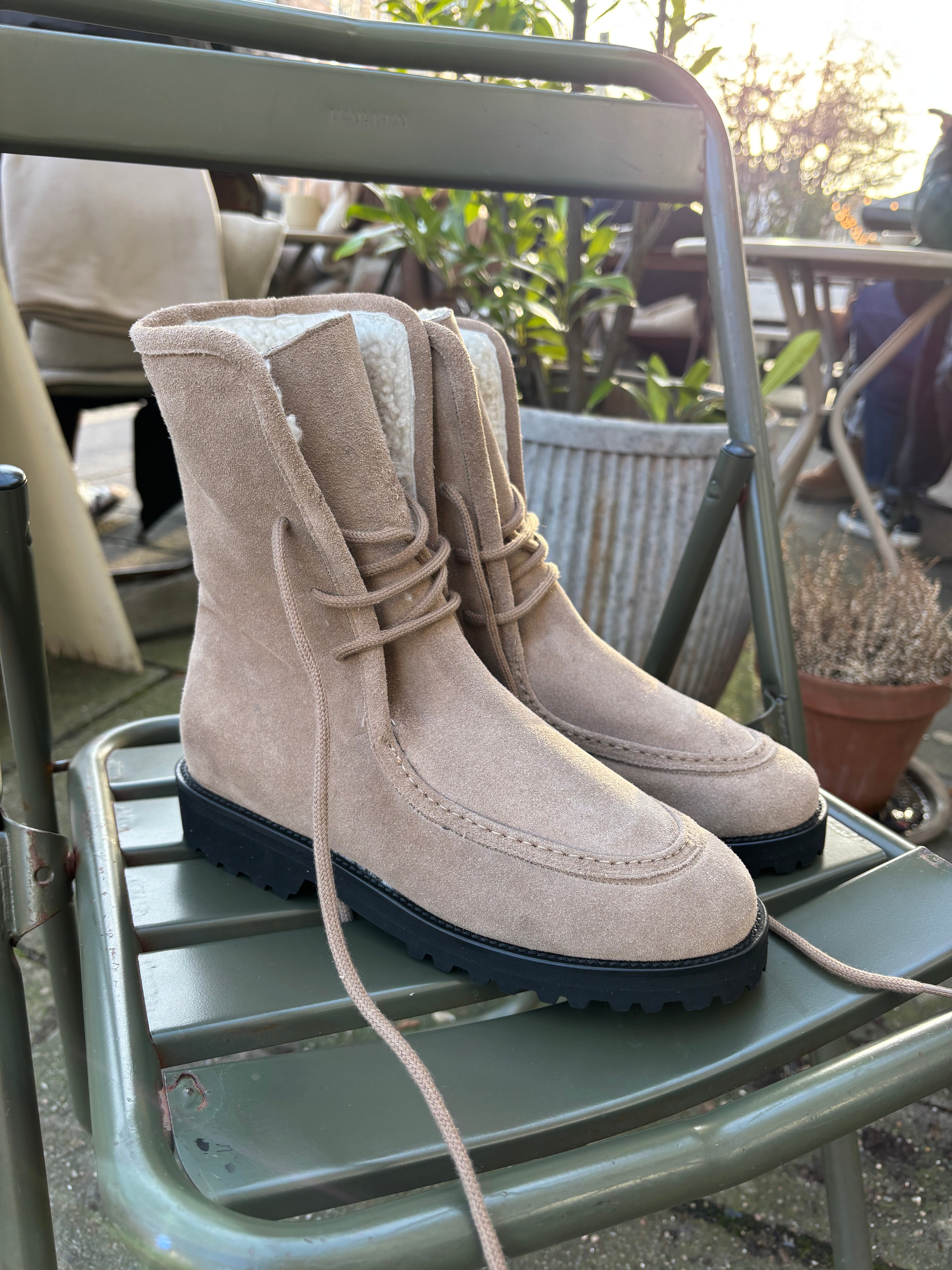 Eleganz Made in Italy. Diese mit Lammfell gefütterten Winterstiefel begeistert mit hochwertigem Veloursleder, das für angenehmen Tragekomfort sorgt. Der hohe Schaft mit klassischer Schnürung rundet das Gesamtbild harmonisch ab.