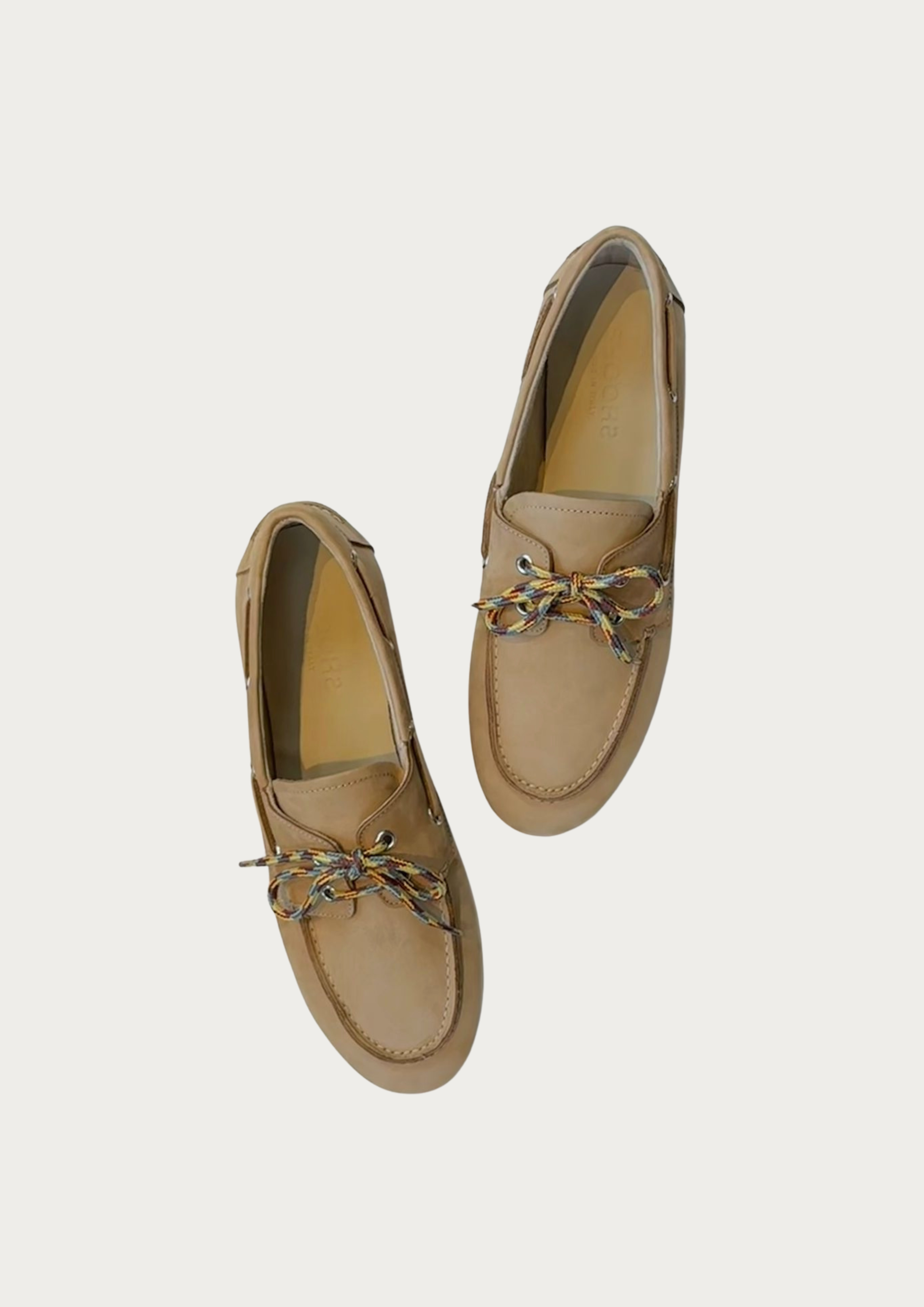 Unsere Bootsschuhe wurden in Italien aus geschmeidigem Nabuk Leder gefertigt, sie zeigen sich in diesem Frühjahr von dieser überraschend coolen Seite. Die Schnürsenkel kommen in zwei Varianten, einmal in bunt und einmal in Leder, je nach Lust und Laune austauschbar.