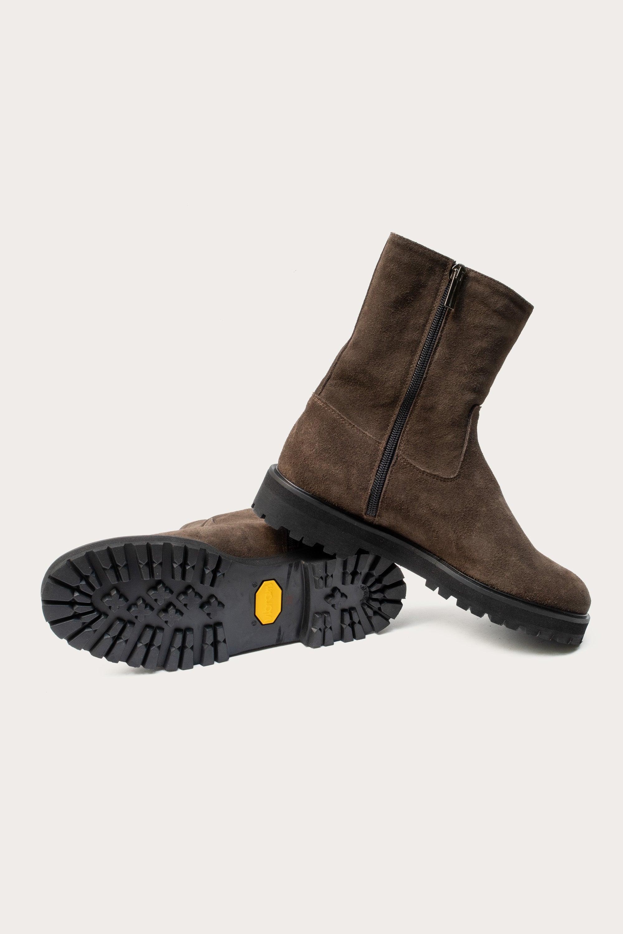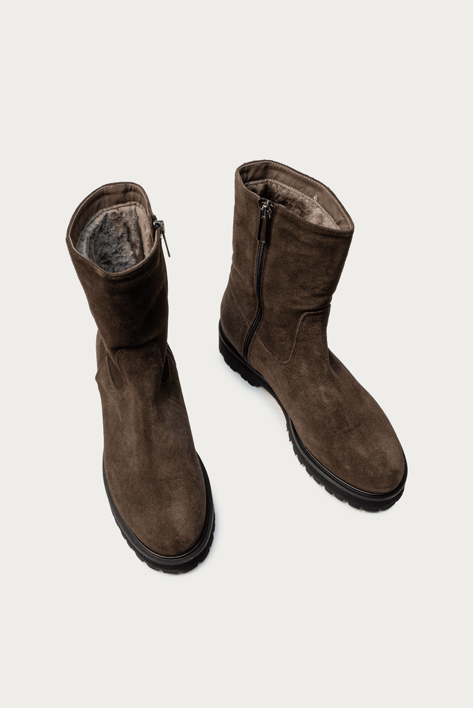 Mit unseren Winter Boots kann uns schlechtes Wetter stiltechnisch nichts anhaben. Das dunkelbraune Modell wurde in Italien aus Veloursleder gefertigt und mit einem wärmenden Lammfell ausgekleidet. Die profilierte Gummisohle schützt Sie dabei vor nassem Untergrund und bietet optimalen Halt. Der Reissverschluss an der Innenseite sorgt für ein bequemes Reinkommen. Tragen Sie all Ihre liebsten Freizeitlooks dazu.