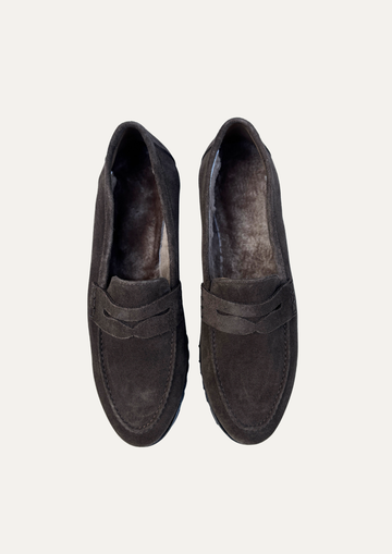 Tilla Dunkelbraun Wildleder mit Lammfell