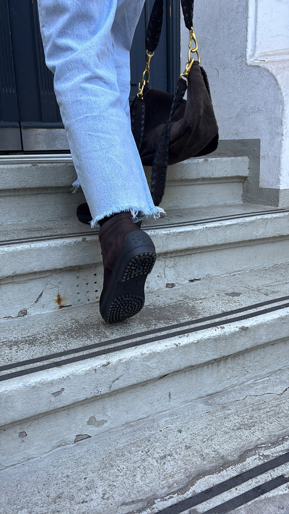Tom Dunkelbraun Veloursleder mit Lammfell